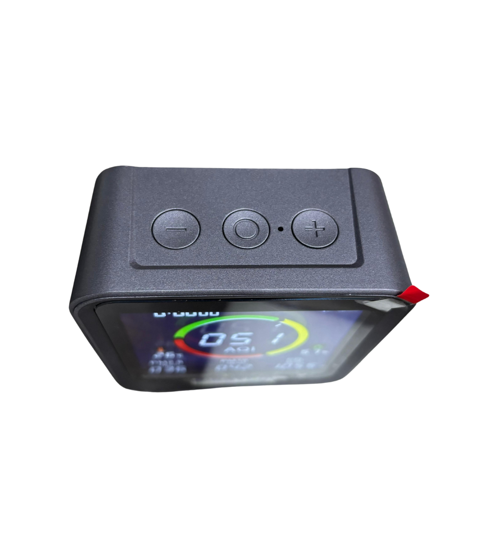 Output: Values shown on LCD with AQI color ring; optional alerts when thresholds exceeded.